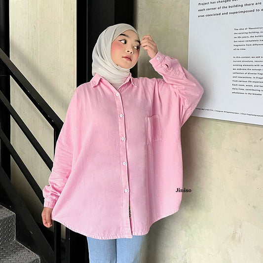 JINISO - Kemeja Denim Oversize Shirt Milky Terracotta HYPER ACTIVE