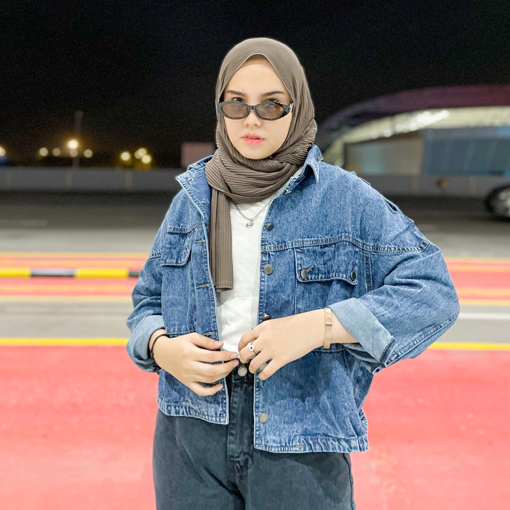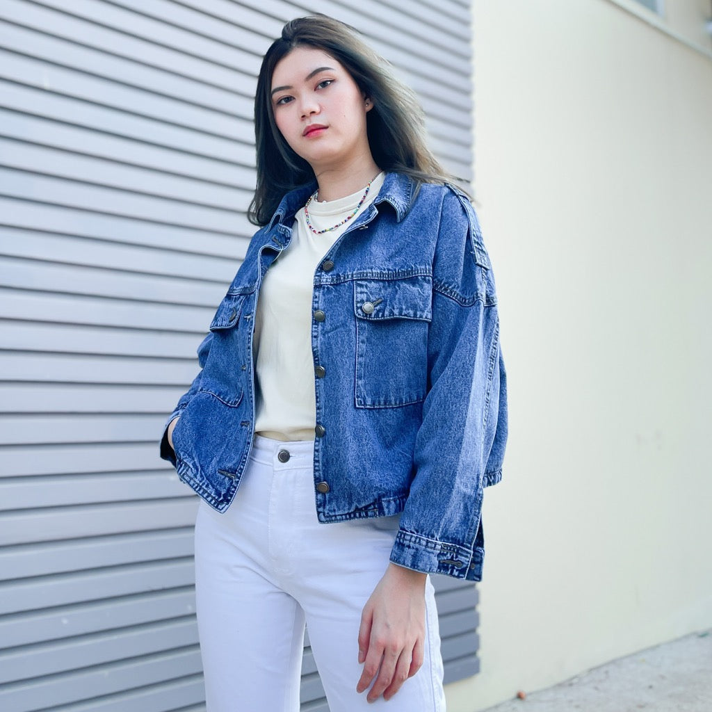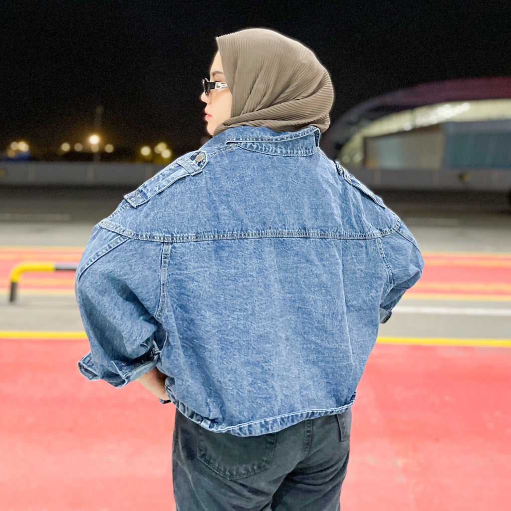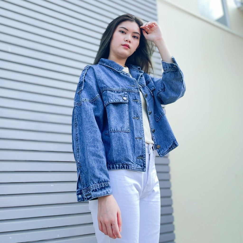 JINISO Jaket Crop Jeans Oversize Blue Acid