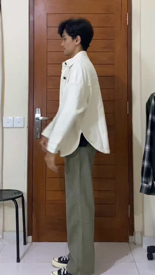JINISO Pria Jaket Jeans Oversize Pocket Atlas Snow Grey