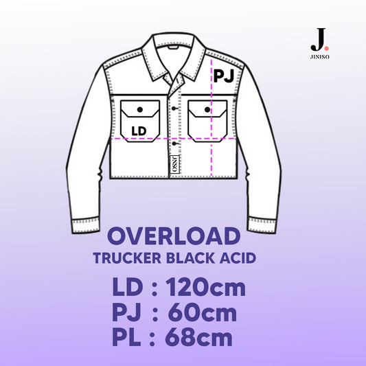 JINISO Pria Jaket Jeans Oversize Raw Trucker Black Acid
