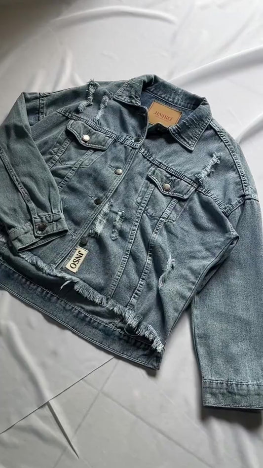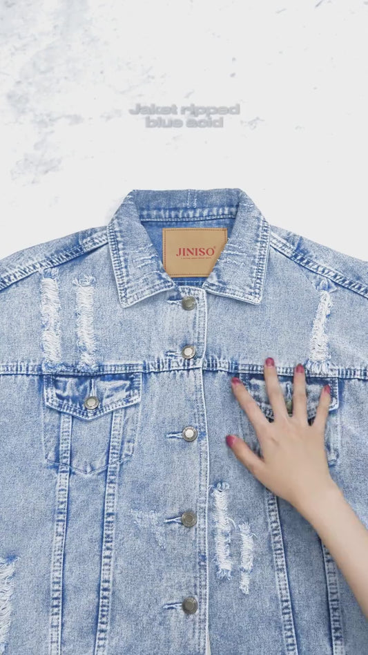 JINISO Ripped Jaket Jeans Oversize Vintage Blue Acid