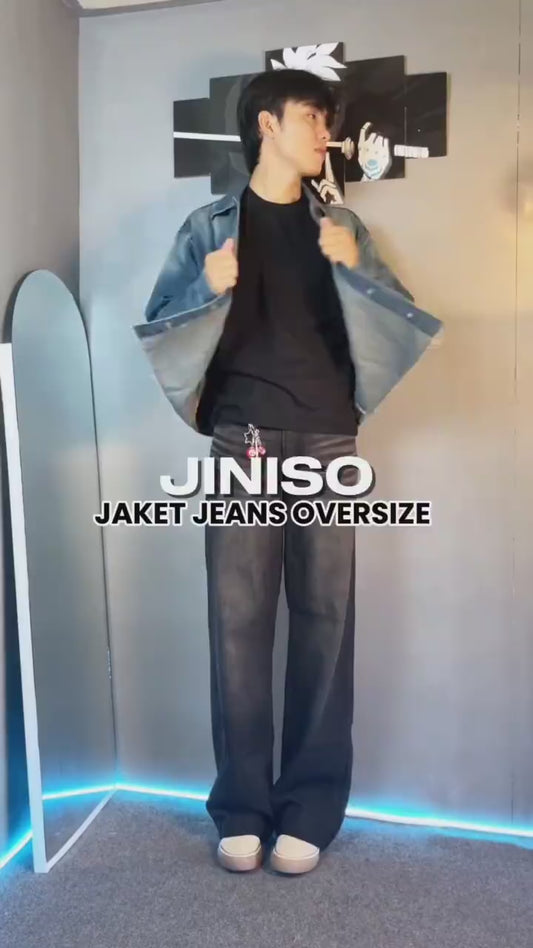 JINISO Pria Jaket Jeans Oversize Seoul Blue Wash