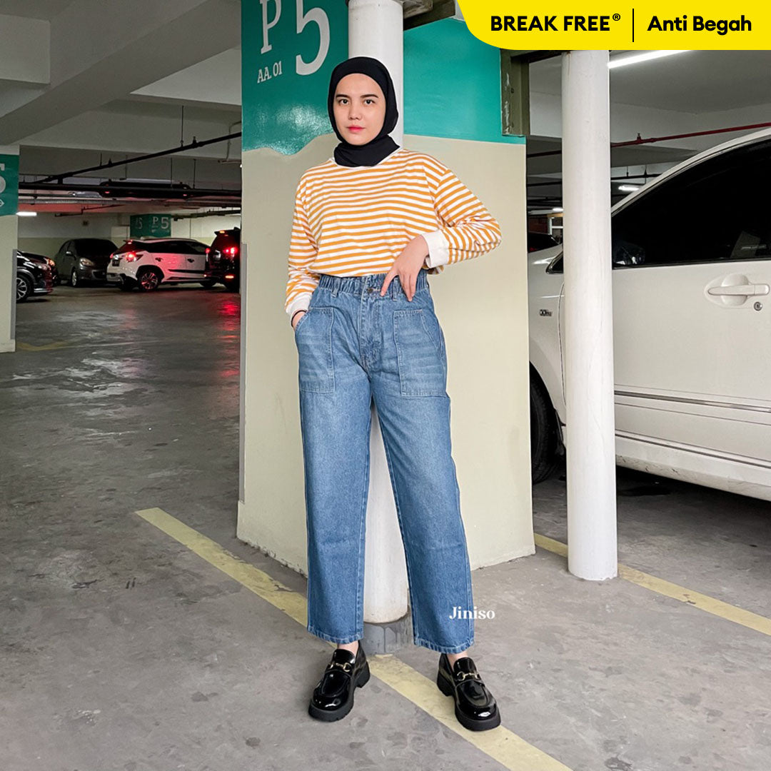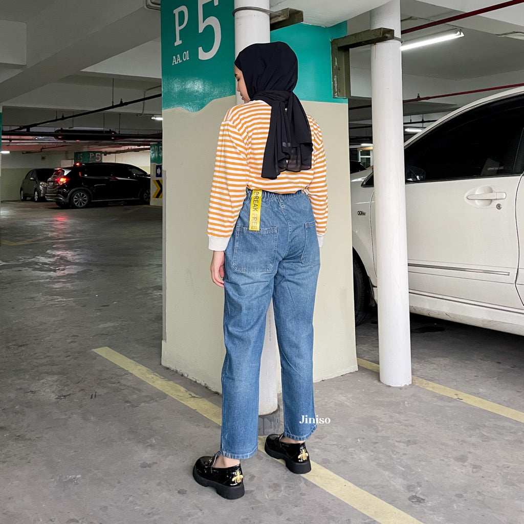 Kolaborasi 2 model jeans yang kekinian Baggy & Mom jeans dimana pinggangnya full karet yang #AntiBegah dan cuttingan lurus longgar yang longgar bikin super bebas bergerak! Wajib punya dan wajib dipake harian