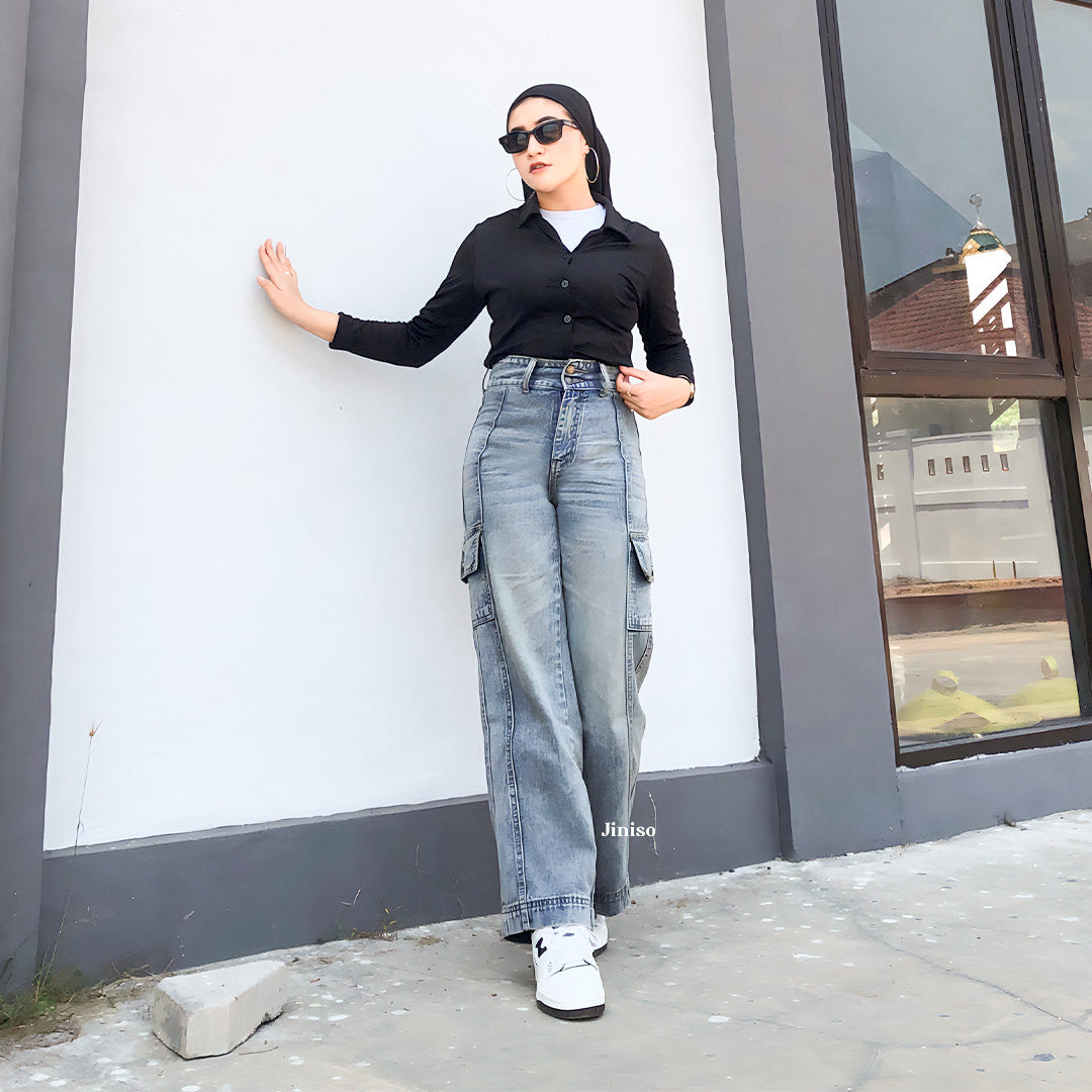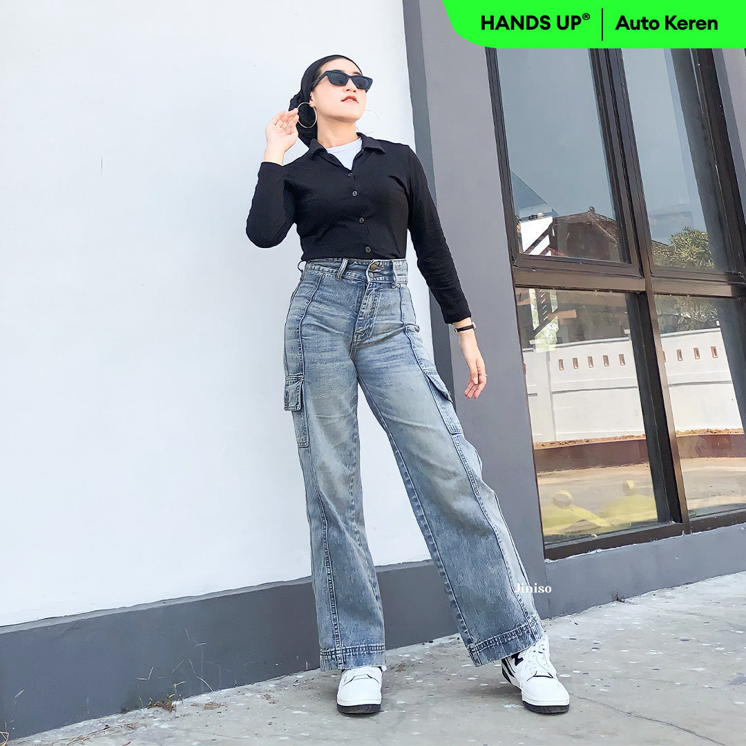 HIGHWAIST CARGO - HANDS UP #AutoKeren