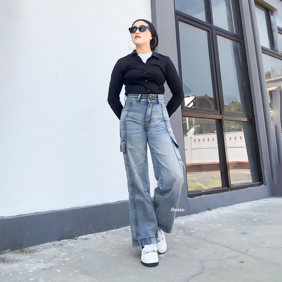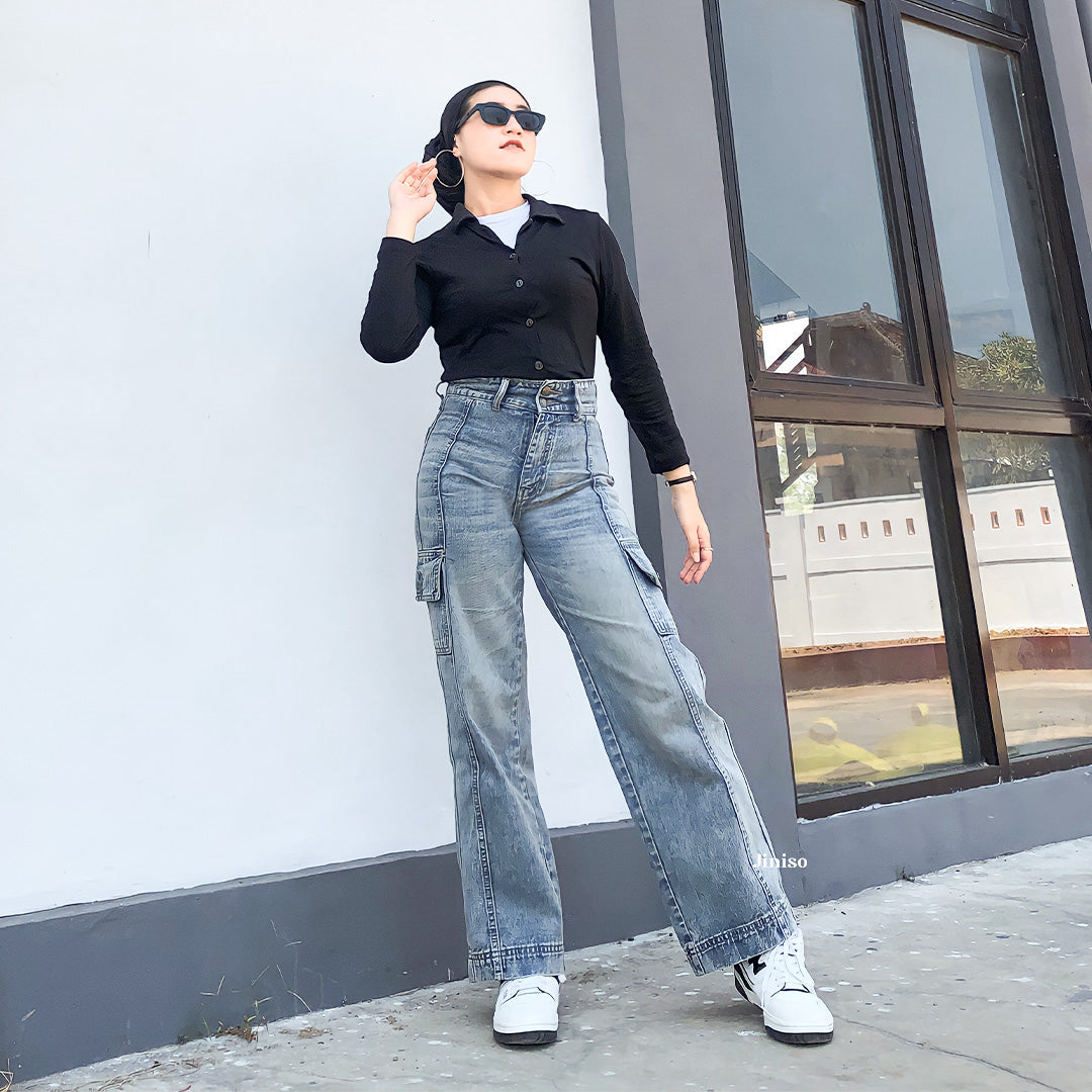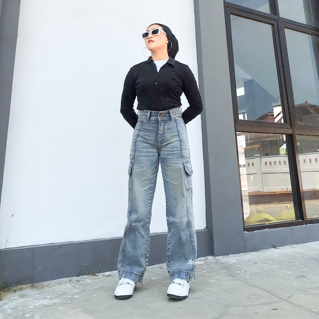 JINISO - Highwaist Cargo Loose Jeans 405 HANDS UP