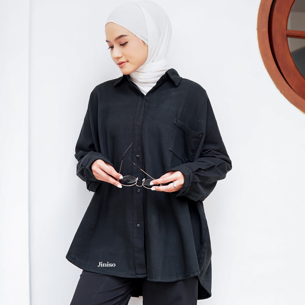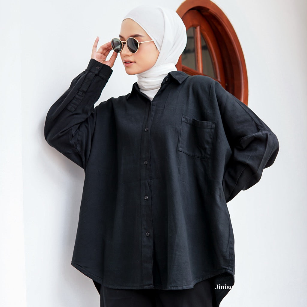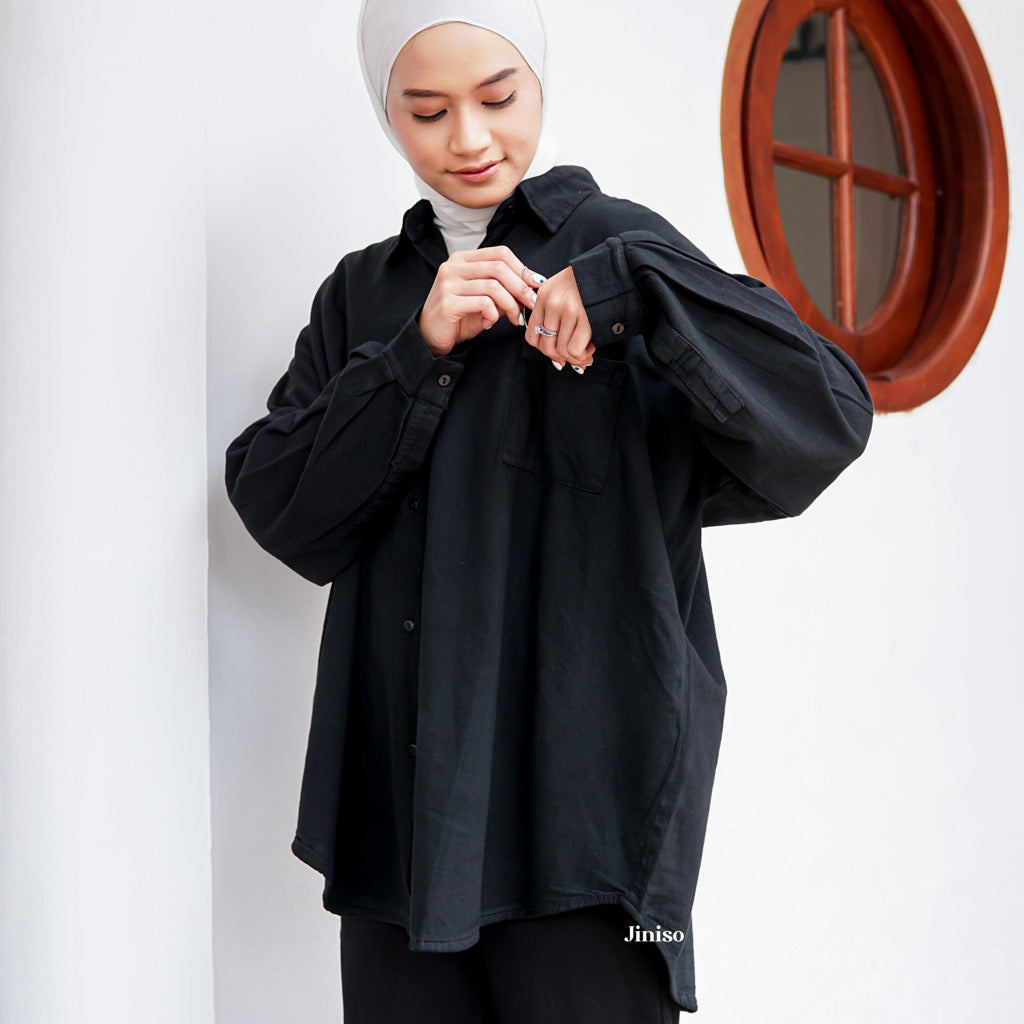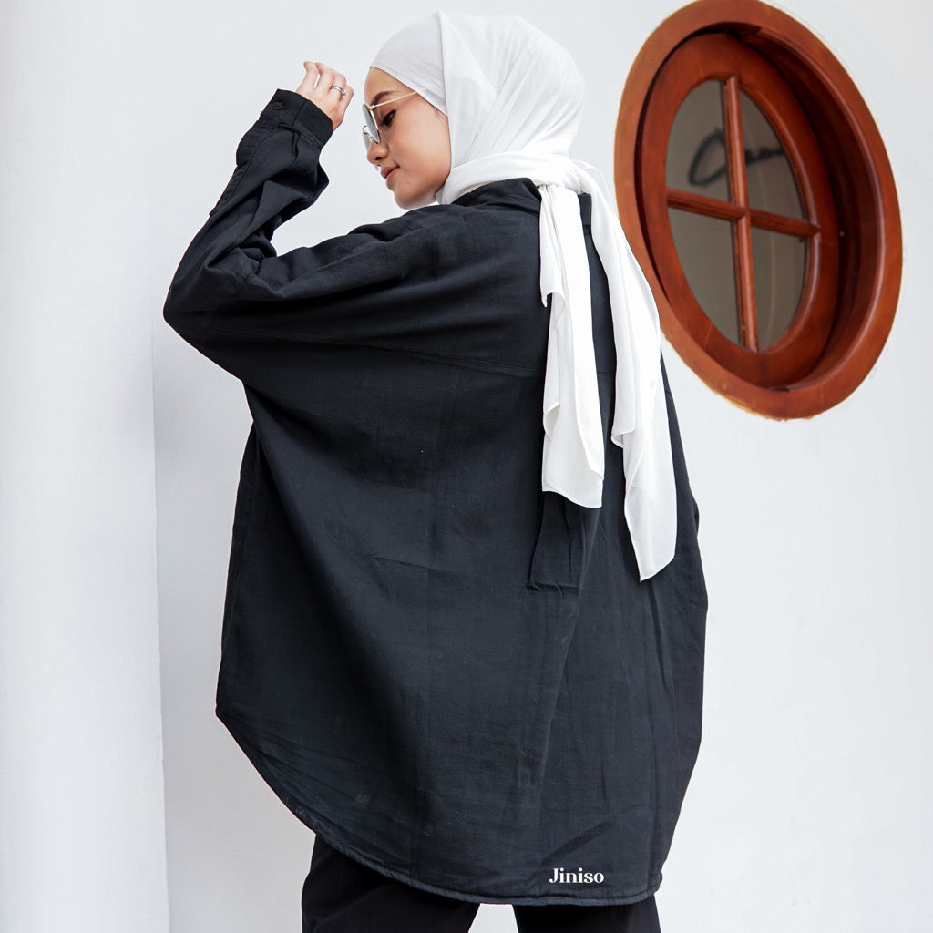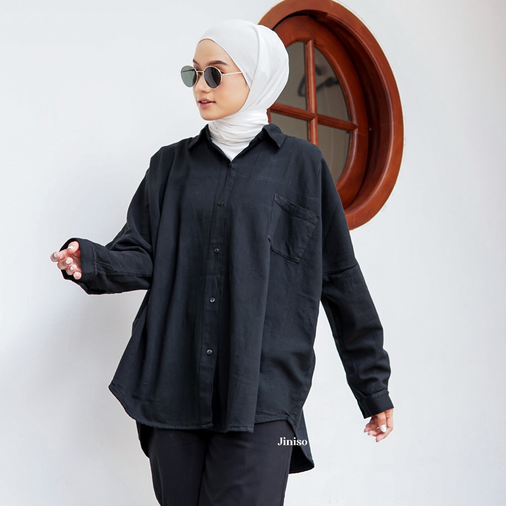 JINISO Kemeja Oversize Shirt Jet Black HYPER ACTIVE