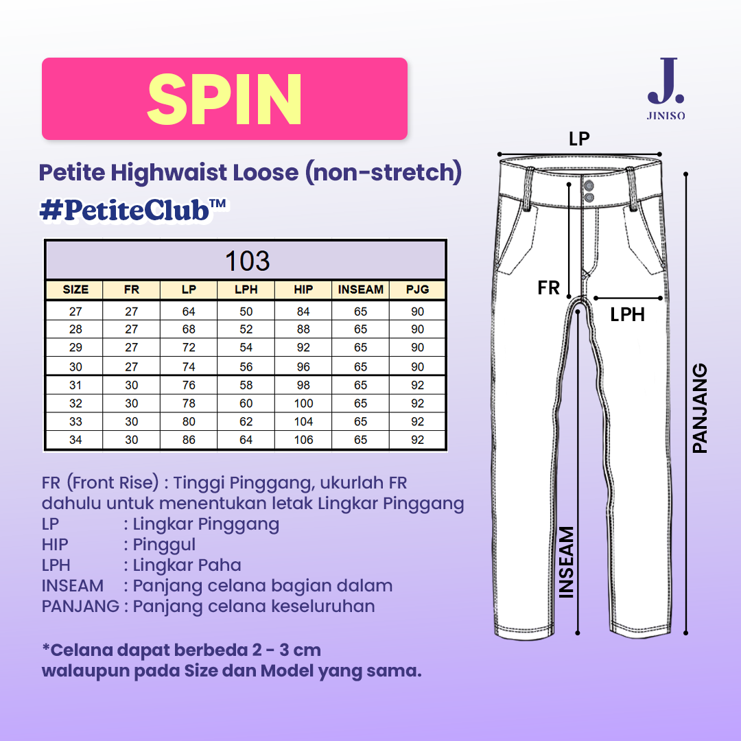 Celana Loose Jeans yang tidak kepanjangan, tidak menggelembung, dan jatuhnya clean. SPIN Petite Loose untuk tinggi (150 - 160cm) membuat siluet tampak jenjang jatuh sempurna